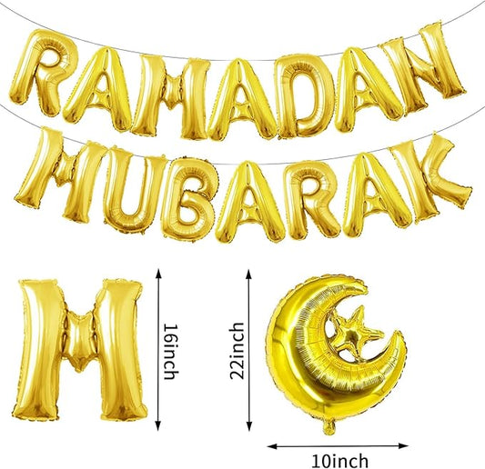 Ramadan Mubarak Balloons - 2pcs Set: Banner