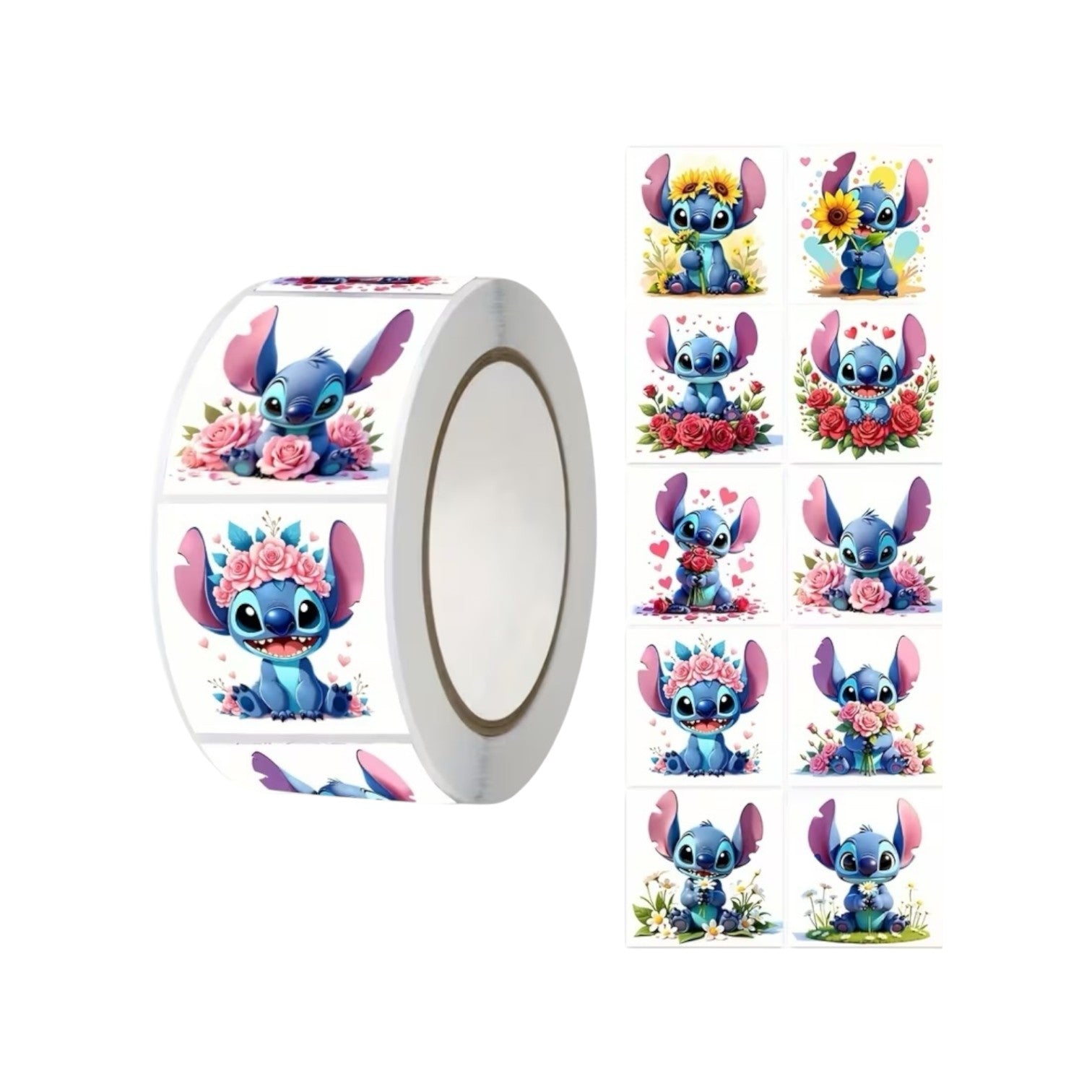 500 قطعة من ستسكر ديزني ستيتش، بتصميم ستيتش والزهور، 10اشكال مختلفة