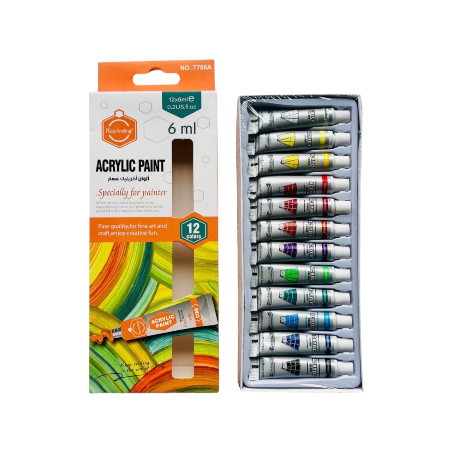 7706A ألوان أكريلك 6 مللى أنابيب 12 لون - كيب سمايلنج موديل