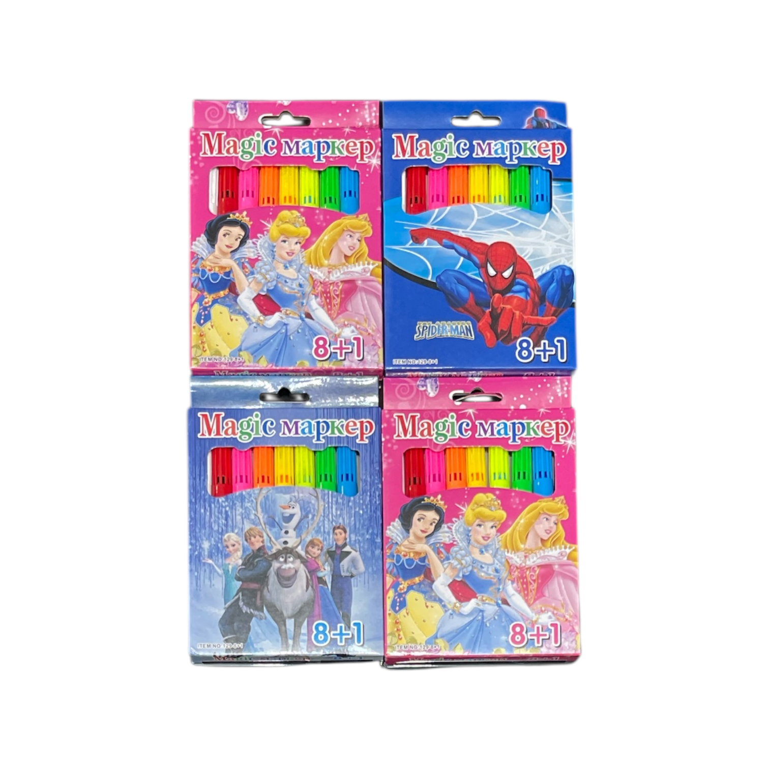 - The set contains 8 colored markers plus 1 "magic" marker.