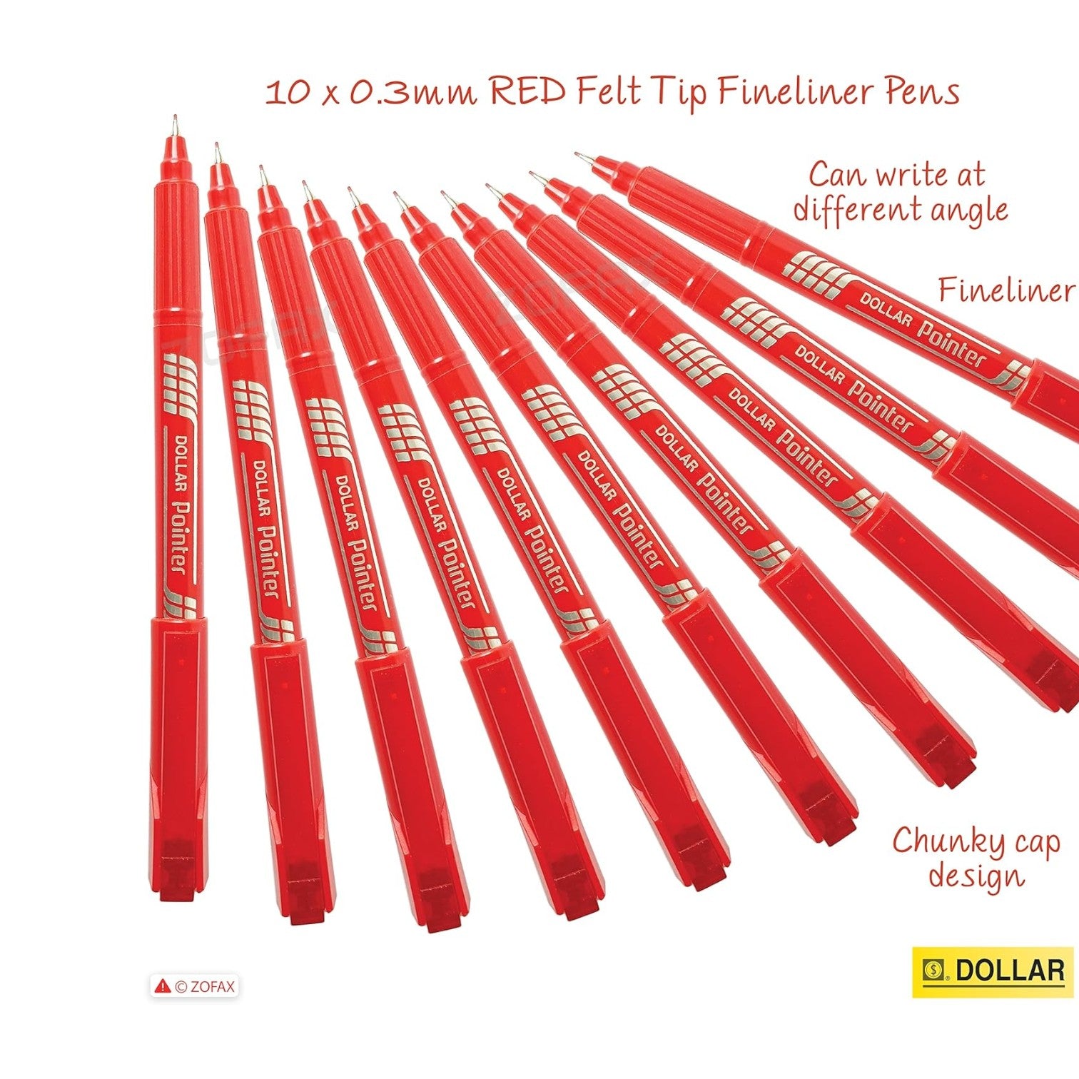 DOLLAR Fineliner Pens, RED, 0.3mm Ultra Fine Felt Tip