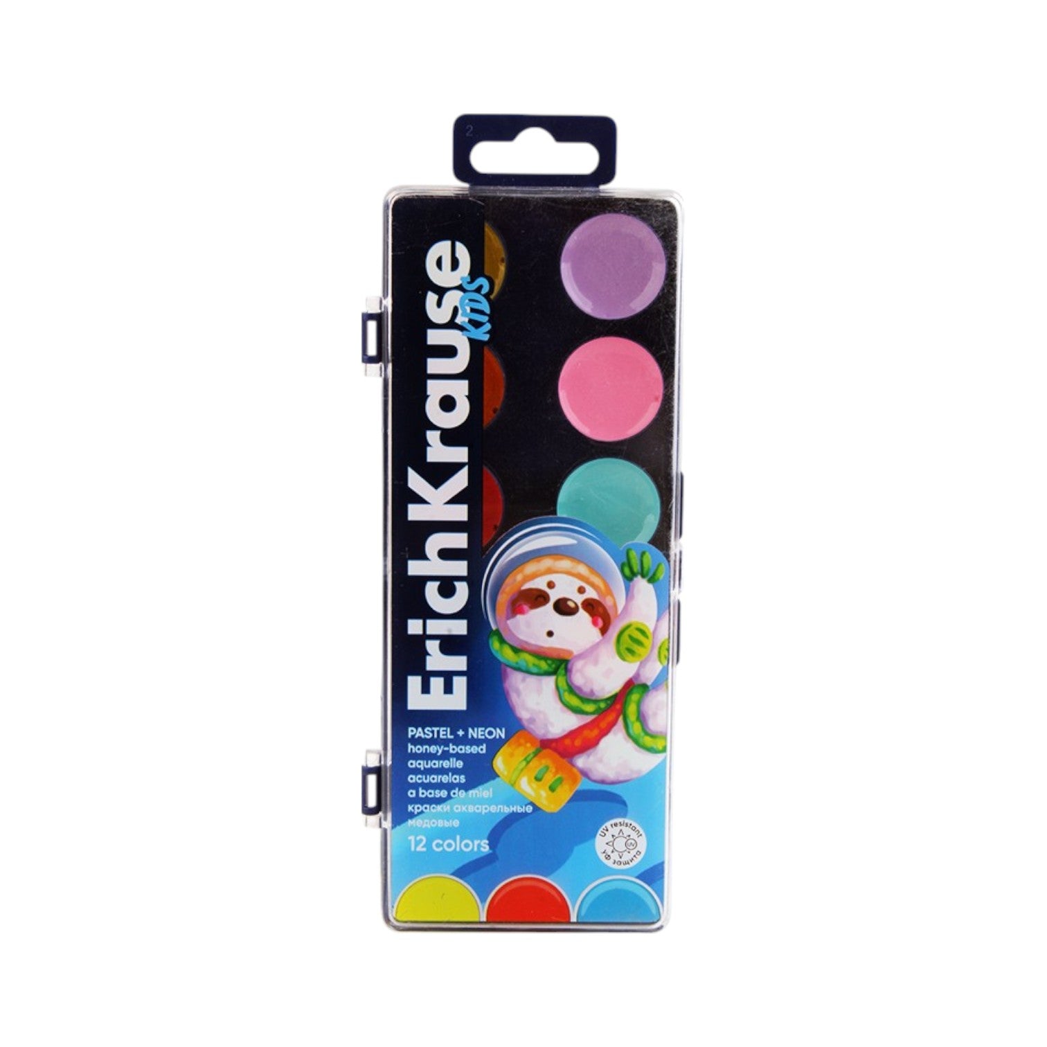 علبة ألوان مياه بلاستيك 12 لون باستيل وفسفوري + فرشاة - اريك كراوس موديل 61364