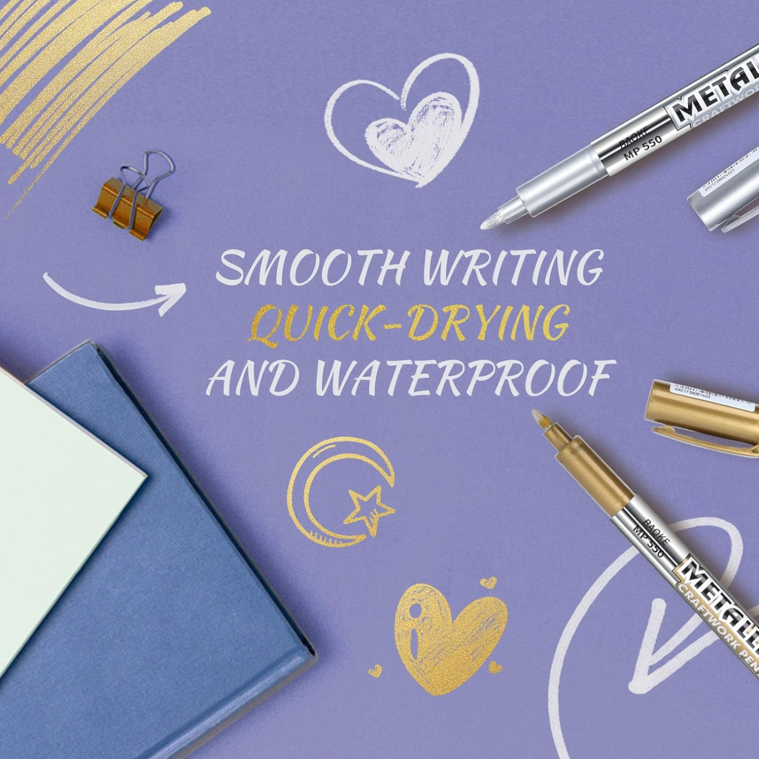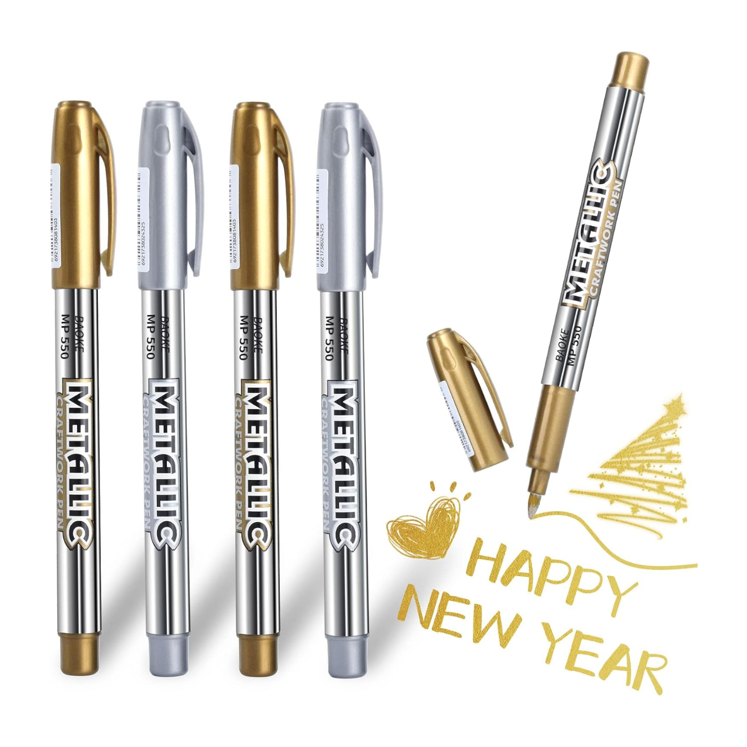 Stunning Metallic Effect: 5-pack gold silver paint pens utilize vivid, acrylic ink that dries quickly to produce a very durable opaque and glossy finish on almost all surfaces. Metallic works of art will shine.