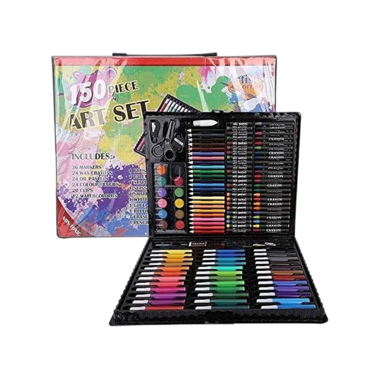 INNOVATIVE 150 Pcs Deluxe Art Set Art Supplies for Kids,Painting Sketching Color Pencils Crayon Oil Pastel Watercolor Markers for Beginners and Children Suitable for Painting Birthday Gift Set (Black) A