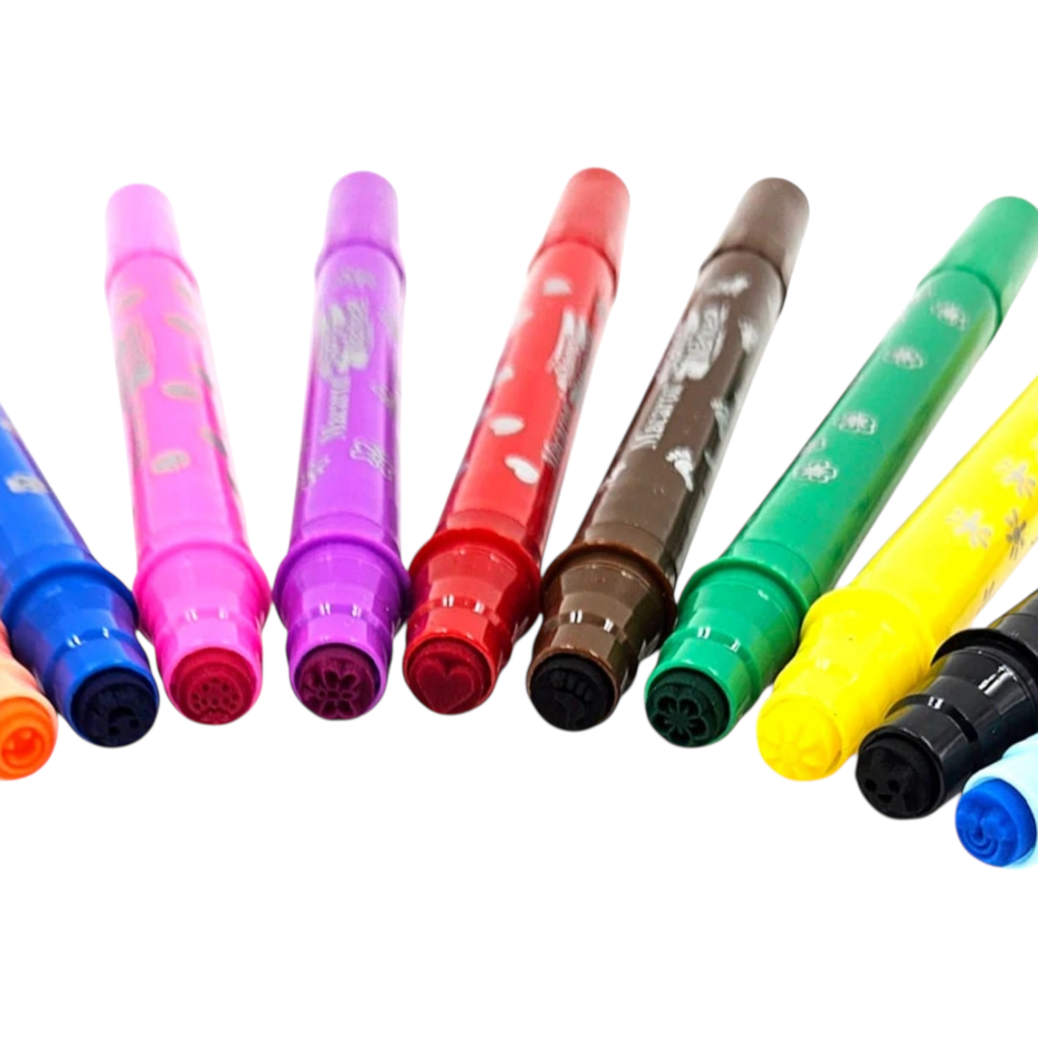 مجموعة طوابع وأقلام تلوين برائحة الماكرون × ١٠ ألوان + تغليف