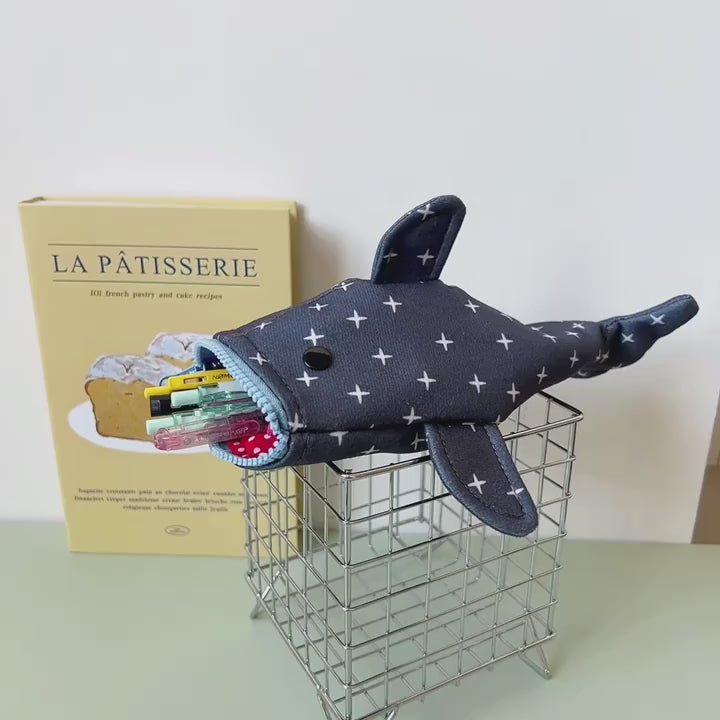 مقلمة على شكل سمكة قرش، حقيبة أقلام بسحاب على شكل فم سمكة قرش لطيفة