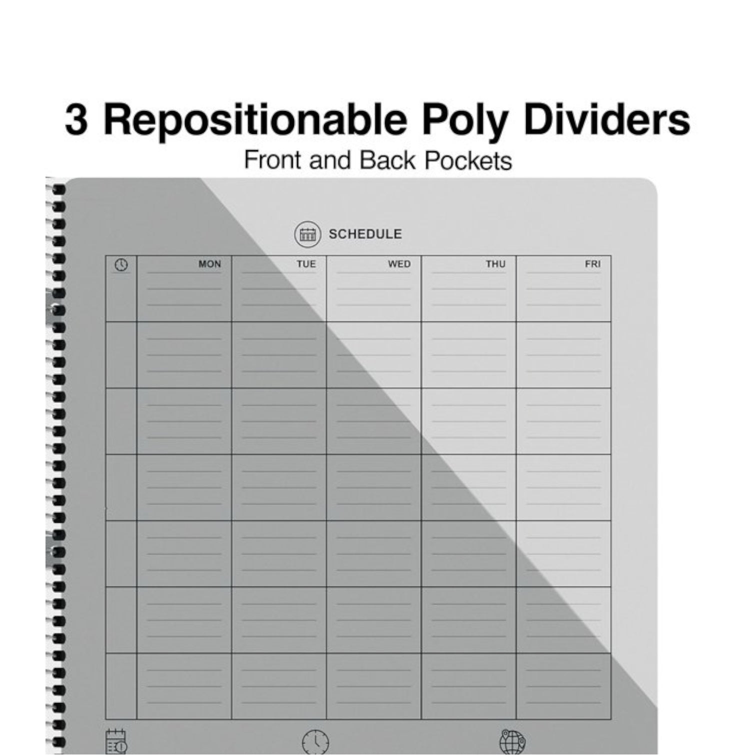 - The notebook contains five colored dividers to divide the notebook for easy organization of notes.