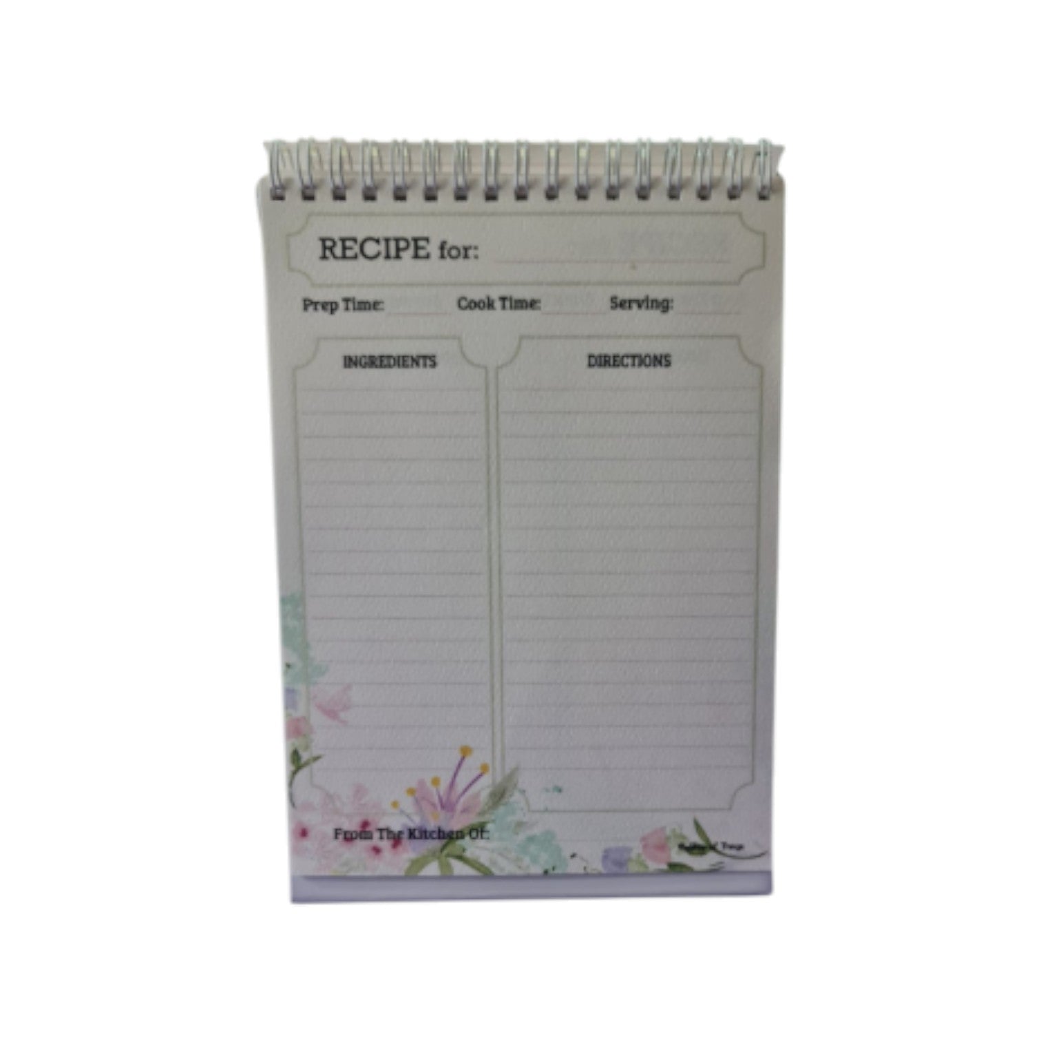 The recipe book is on a hard stand so you can keep it up while you cook and add notes easily when you think of them.